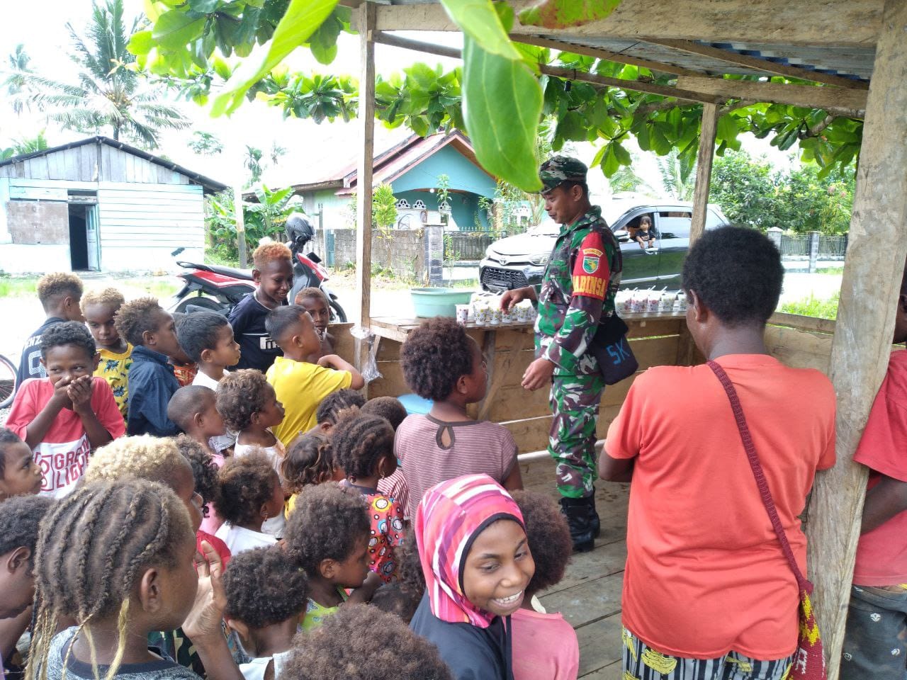 MedanEkspress | Timika - Sebagai upaya memberantas stunting di wilayah binaannya, Babinsa Koramil 1710-07/Mapurujaya dipimpin Serda Yohanes Lilik membagikan makanan tambahan untuk Balita, Rabu (20/12/2023).