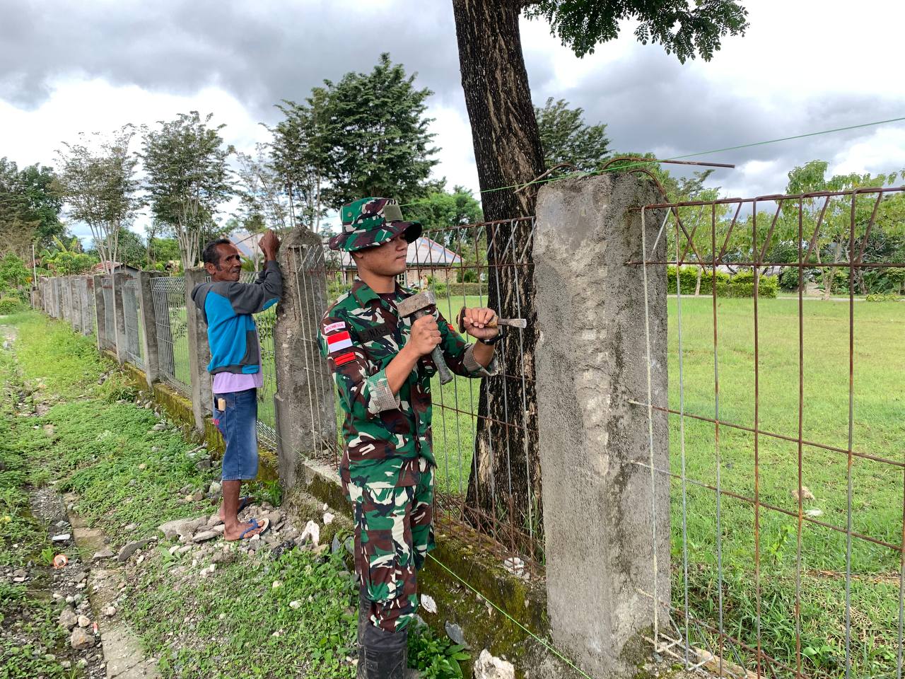 | Satgas Yonkav 6/NK Renovasi Pagar Gereja Santa Maria Desa Eban. |
