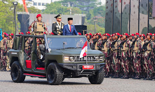 MedanEkspress | Jakarta - Panglima TNI Jenderal TNI Agus Subiyanto bersama Kasad Jenderal TNI Maruli Simanjuntak, Kasal Laksamana TNI Muhammad Ali dan Kasau Marsekal TNI Mohamad Tonny Harjono mendampingi Presiden RI Joko Widodo sebagai Inspektur Upacara pada Upacara Peringatan HUT ke-79 TNI Tahun 2024, bertempat di Lapangan Silang Monas, Jakarta Pusat, Sabtu (5/10/2024).